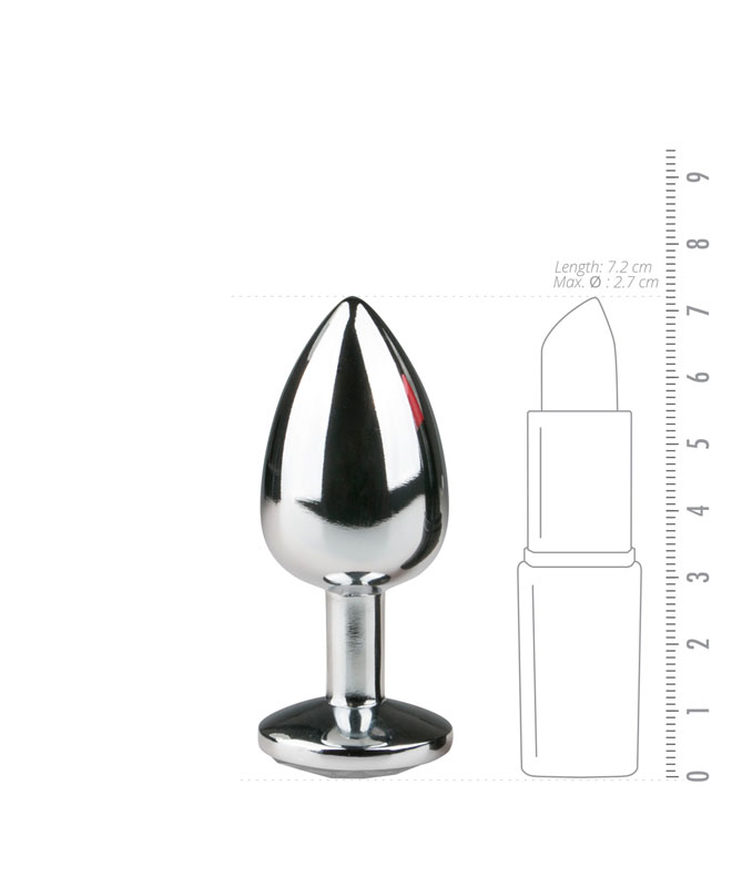 Den sølvfargede pluggen er laget av aluminium og har en krystall i den flate enden. Analpluggen er perfekt for å ha på hele dagen. Med hver bevegelse nyter du den intense stimuleringen - selv når du sitter blir du bortskjemt!