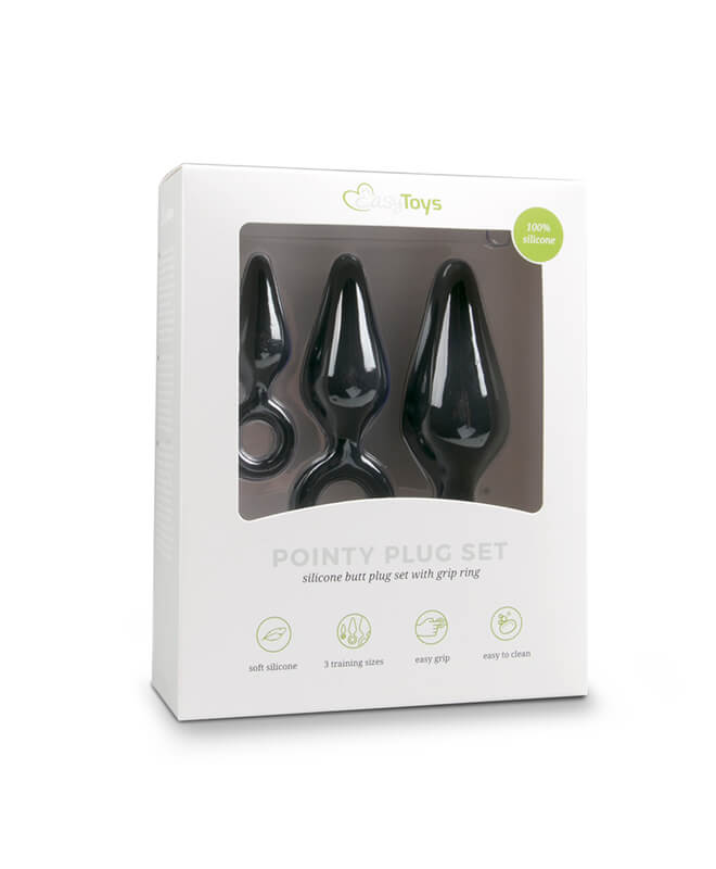 Disse analpluggene er faste, men likevel fleksible, og ideelle for elskere av anal moro. Den glatte, myke silikonen gjør dem til en fryd å bruke! Designet er elegant, med et slankt midtstykke og en spiss tupp som gjør den enkel å sette inn. Prøv ut alle de tre forskjellige størrelsene og du vil bli en ekspert på anallek på kort tid!