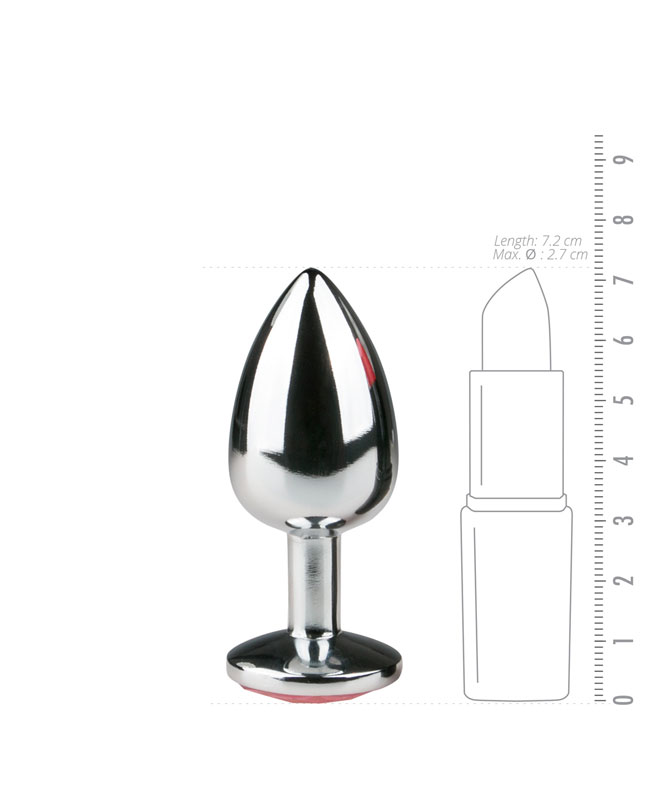 Den sølvfargede pluggen er laget av aluminium og har en rosa krystall i den flate enden. Analpluggen er perfekt for å ha på hele dagen. Med hver bevegelse nyter du den intense stimuleringen - selv når du sitter blir du bortskjemt!