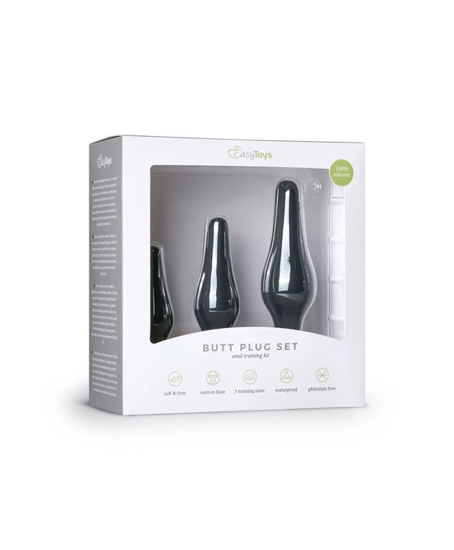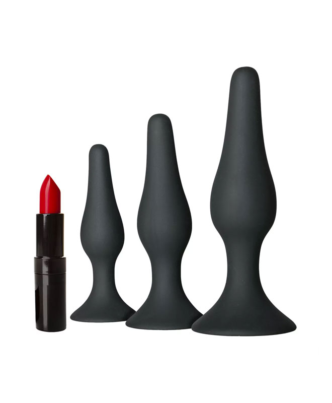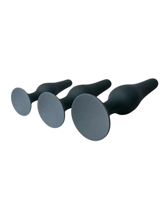 Er du ny på analsex og vil du prøve en tilfredsstillende sensasjon for første gang? Da er dette analtreningssettet med tre forskjellige buttplug-størrelser perfekt for deg! Du kan starte med den minste pluggen og prøve de større pluggene når du er klar for mer!