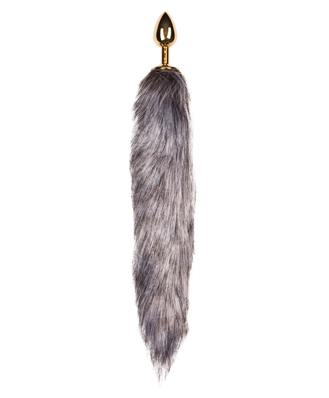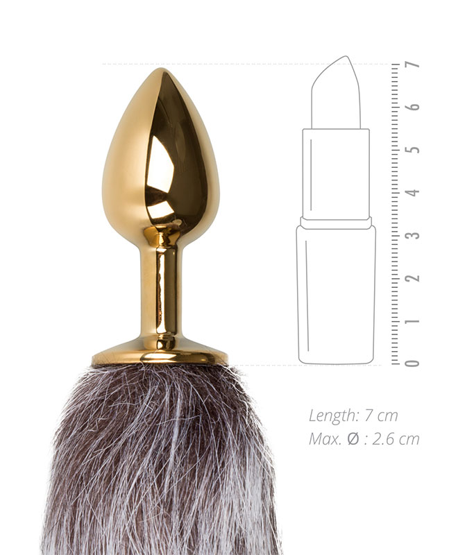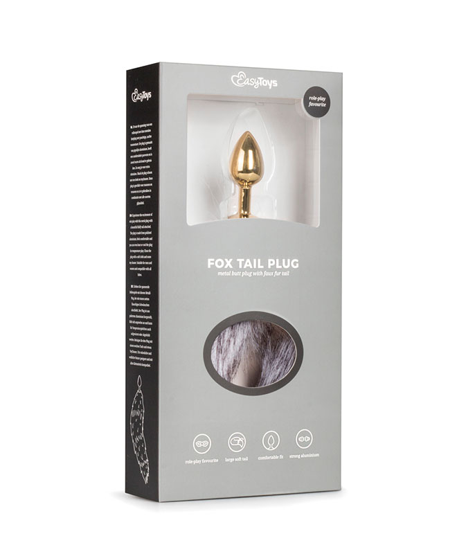 Denne analpluggen fra EasyToys Fetish kombinerer en liten, glinsende plugg i gull med en fluffy grå revehale i myk fuskepels. Pluggens metalloverflate gir en frekk kontrast til den bevegelige, myke halen og gir et tydelig statement både for deg og en partner. Den grå tonen gjør halen stilren og dyrisk på samme tid.