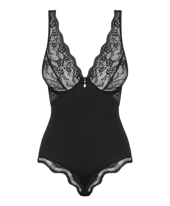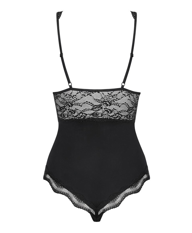 Undertøy som strammer og viser frem formene? Denne svarte teddyen fra Obsessive fremhever kroppen med en kroppsnær passform og delikate blonder. Brystene rammes inn av myke blonder, mens et lite smykke i front trekker blikket akkurat dit du vil. Den åpne ryggen og de feminine linjene gir et sexy look fra alle vinkler.