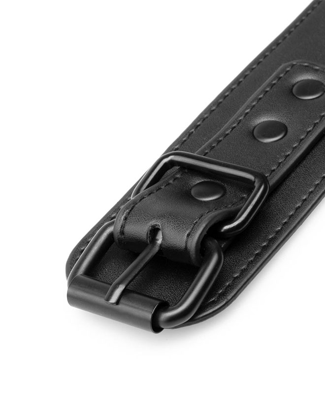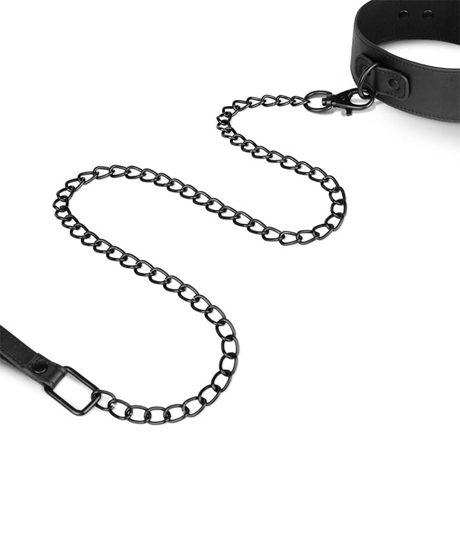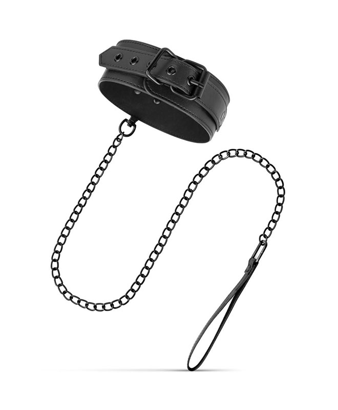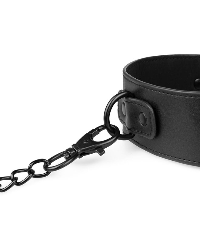 Dette bondageutstyret fra Bedroom Fantasies kommer i slitesterkt, svart kunstskinn med blanke metall-detaljer som sklir rett inn i BDSM-verden. Settet består av et halsbånd med lenke, håndjern og fotlenker – alle polstret og justerbare for både stil og komfort. Designet er sexy, stramt og laget for å vises frem.