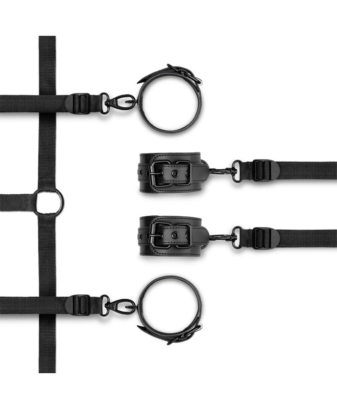 Ta bondage-øktene til neste nivå med dette kinky bondagesettet til madrassen! De justerbare stroppene gjør at den skal passe under enhver madrass. Alle fire mansjettene er sjenerøst justerbare for en perfekt passform.