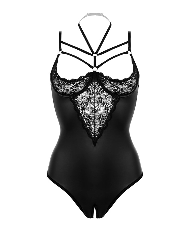 Wow! Denne frekke bodyen i glinsende wetlook er laget for deg som liker å ta kontroll. Her kan vi friste med åpne kopper i tillegg til åpning i skrittet - dette er plagget for deg som ønsker å etterlate pent lite til fantasien. Bodyen har stropper over brystene og i halsen.