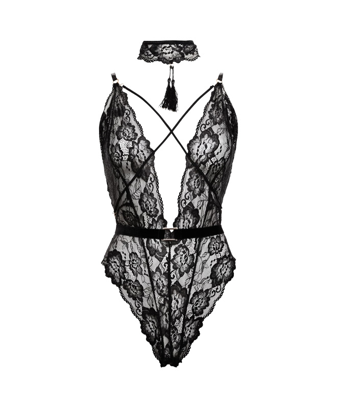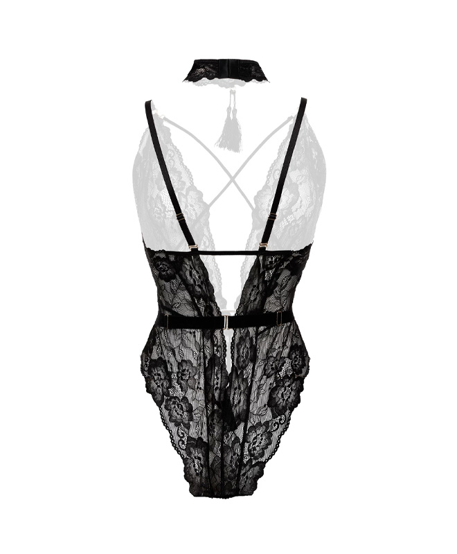 La deg friste av denne frekke og feminine blondebodyen som kombinerer stil og sensualitet! Bodyen er sort og laget av myke og elastiske blonder med et vakkert blomsterdesign som liggert tett mot kroppen og fremhever formene dine på en elegant og forførende måte.