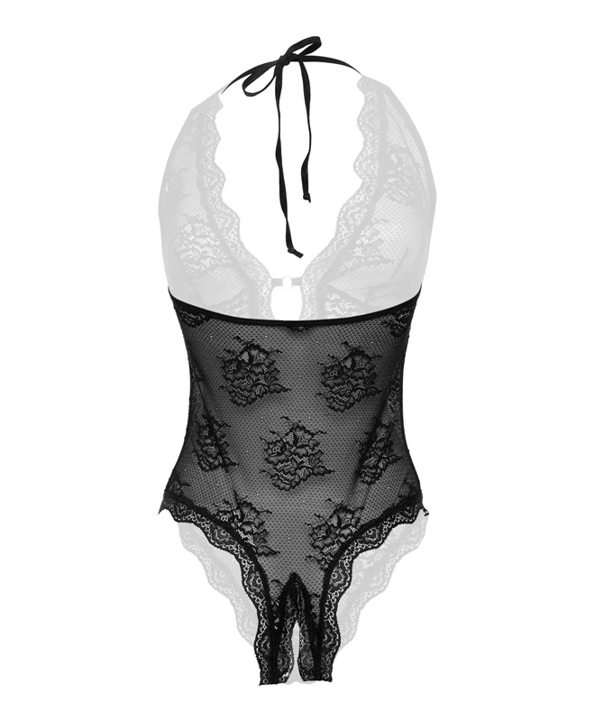 Bodyen er laget av moderne tekstroniske blonder i blomstermønster, og tilbyr overlegen passform. Den har halter som viser frem utringningen din og et skrittløst design, men klarer samtidig å overlate mye til fantastien.