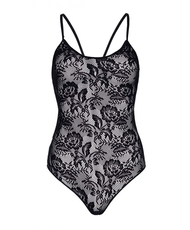 Leter du etter den perfekte kombinasjonen av fest og frekt? Denne gjennomsiktige blondebodyen med blomstermønster har stropper i ryggen som lager en nesten åpen rygg! Bruk den med en svart eller hudfarget BH under og ha den til skjørt eller bukse på en het klubb. Eller overrask partneren din med dette frekke lille nummeret.