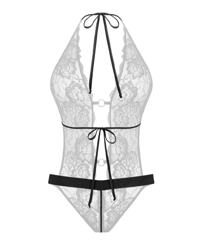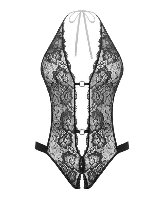 Halterneck-stilen knytes elegant i nakken og rammer inn skuldrene dine, mens snittet fremhever midje, hofter og rumpe på aller beste måte. Den følger hver eneste deilige kurve og gir deg en følelse av å være både selvsikker og uimotståelig. Og ja – den er åpen i skrittet! Dette er bodyen for deg som liker å holde døren åpen for lek og spenning.