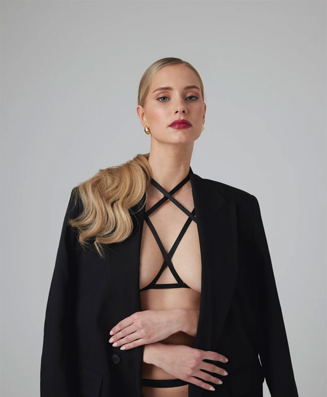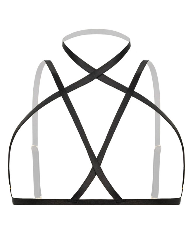 Denne utrolig sexy harness-braletten byr på en frekk miks av lekne linjer og forførende stil. Med åpne kopper, myke elastiske stropper og justerbare detaljer i gull, er den like fin alene som utenpå klær – enten du ønsker å piffe opp hverdagslooken eller bruke den på neste date.