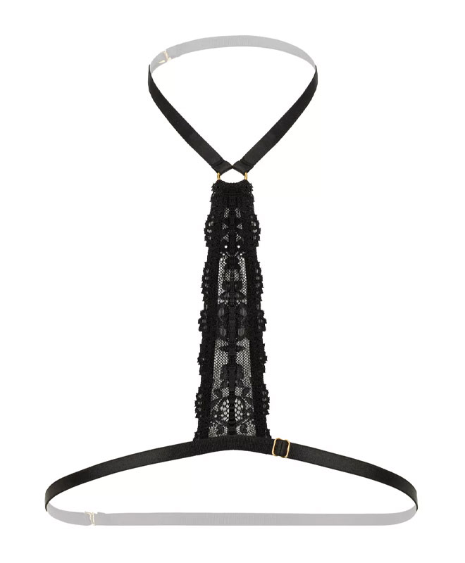 Denne sexy harness-braletten blander lekne linjer med et forførende design, åpne kopper og halterneck. De myke, justerbare stroppene sitter komfortabelt mot kroppen, og gullfargede detaljer og blondedekor gir en ekstra eksklusiv touch. Den er like fin alene som utenpå klær – enten du ønsker å piffe opp hverdagslooken eller bruke den på neste date.