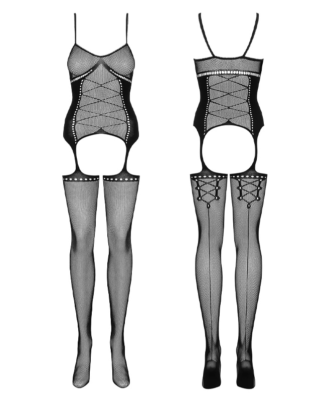 Med denne bodystockingen fra Obsessive kommer du garantert til å være kveldens midtpunkt. Med forførende kryssdetaljer foran og gjennomsiktige kopper er denne utrolig sexy drakten en sikker vinner.