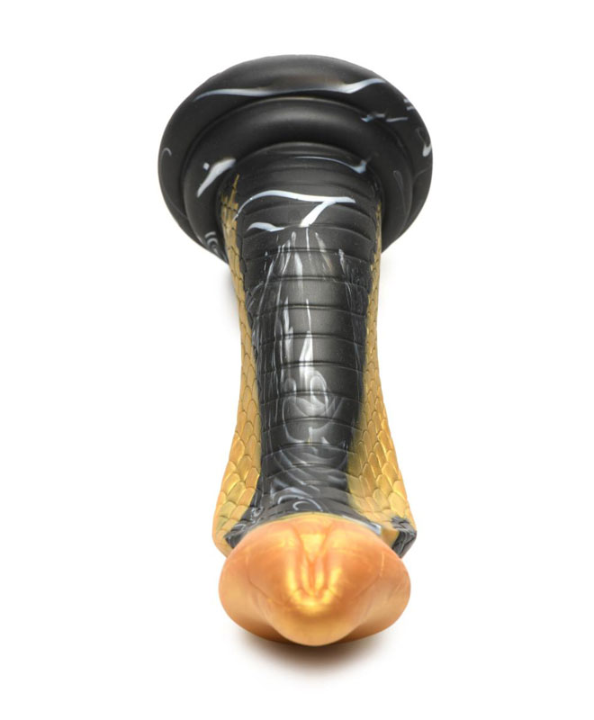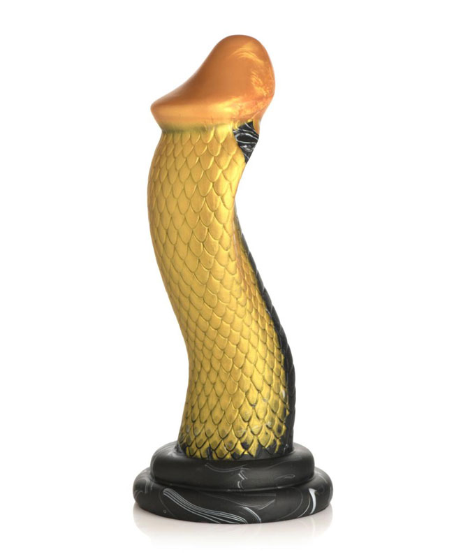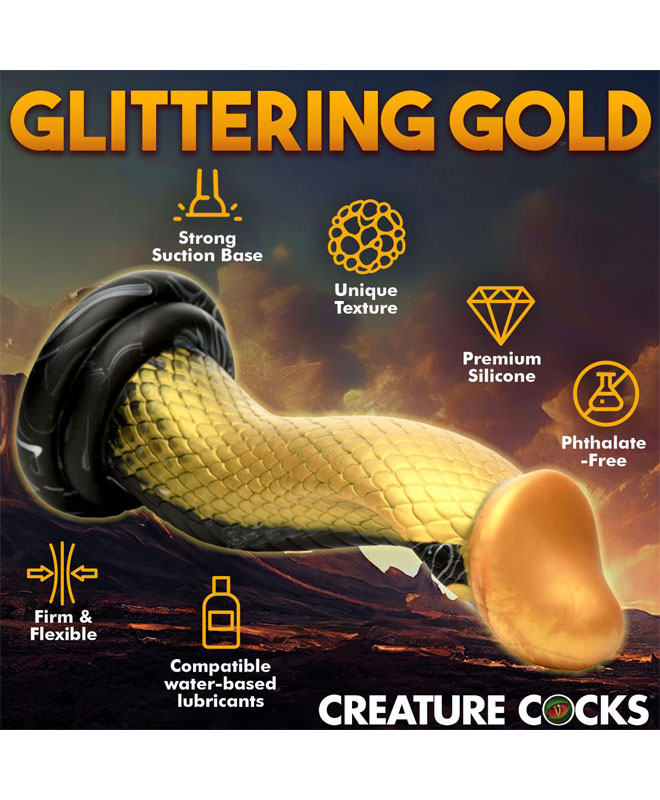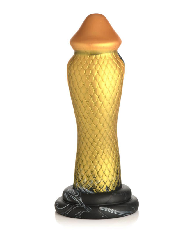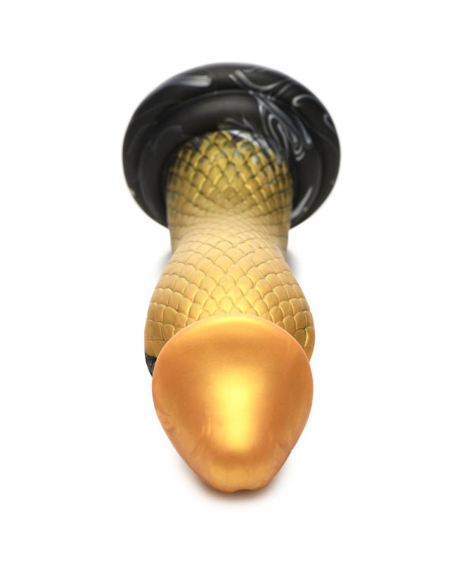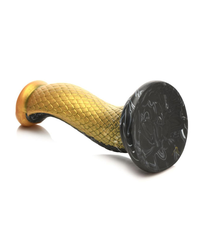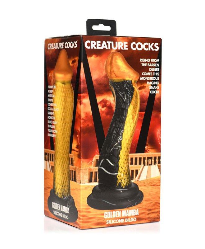 Gå inn i den sensuelle nytelsens verden med denne slående gylne og svartfargede mambaformede dildoen. Den forførende kreasjonen, laget av høykvalitets silikon, er designet for å tilfredsstille alle dine dypeste ønsker og tilbyr en unik opplevelse..