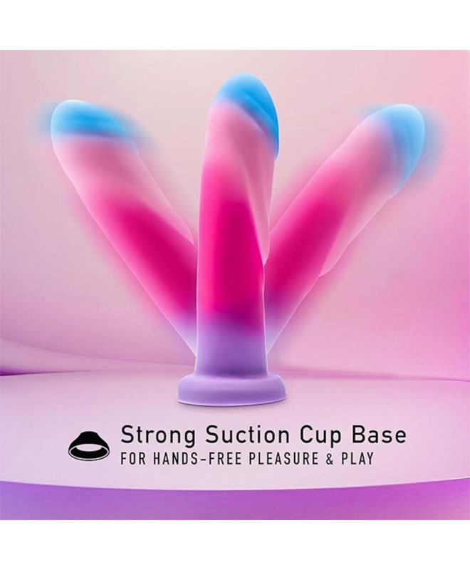 Den solide sugekoppen festes enkelt til de fleste glatte overflater, noe som gjør den ideell for håndfri lek. Dildoen kan også brukes med sele for bruk med partner.