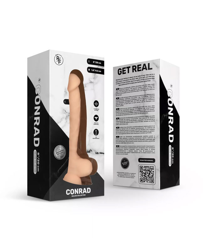 Nyt eksepsjonelt realistisk stimulering med Conrad Vibrerende dildo fra Real Fantasy Deluxe Collection! Denne dildoen er laget av et revolusjonerende materiale som tilbyr et fleksibelt skaft som tilpasser seg formen på kroppen din.