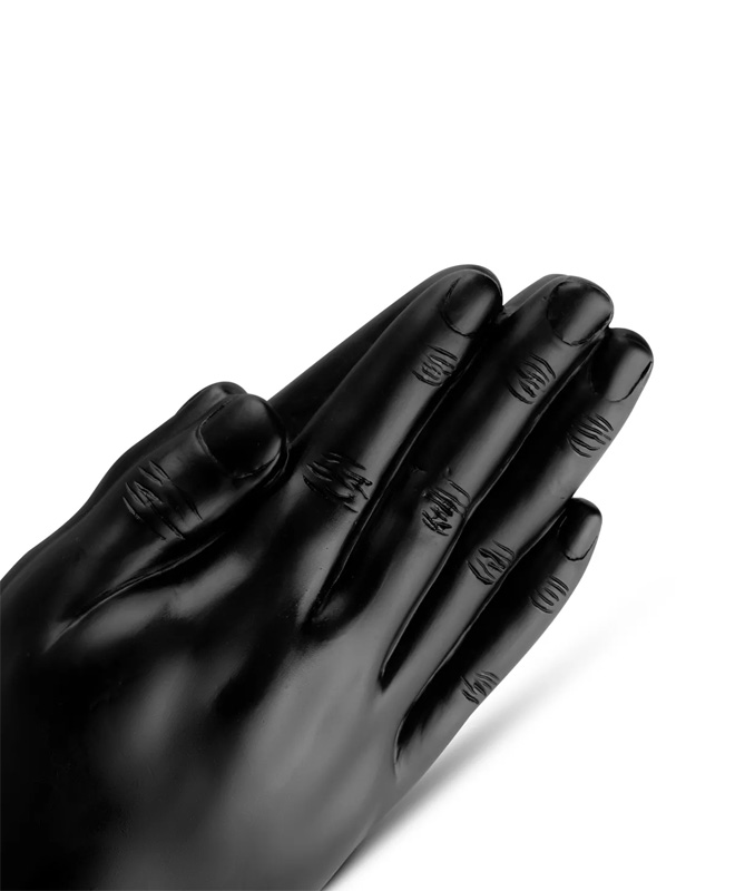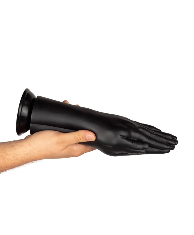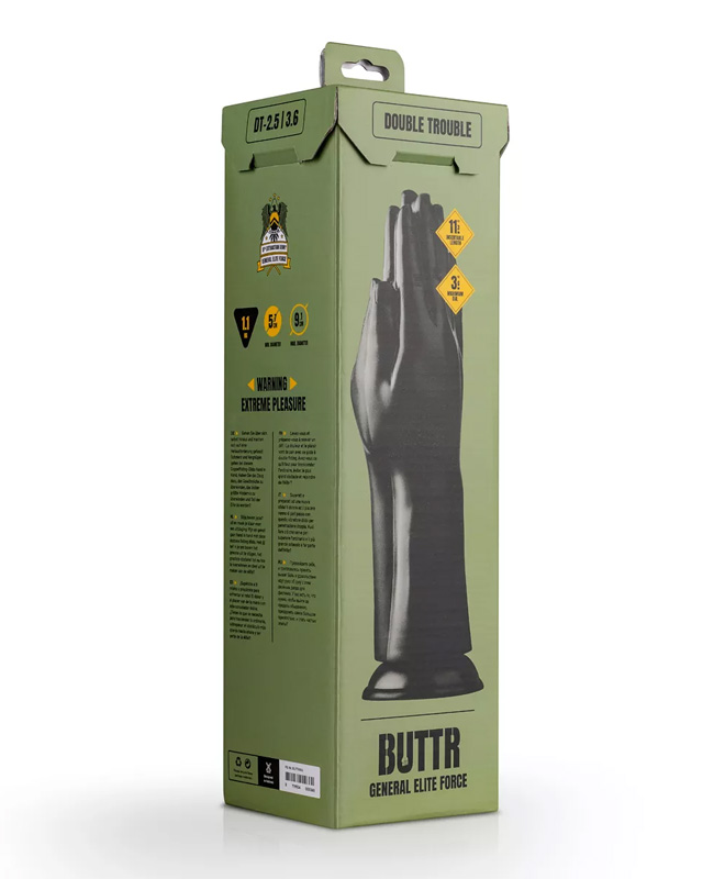 Double Trouble fra BUTTR er en håndformet fisting dildo i svart PVC som ikke legger skjul på hva den er laget for. Det detaljerte designet viser definerte fingre og glatt overflate, alt støpt i en dristig, skinnende finish som gir et rått og sexy design. Den er lang og kraftig, en dildo du kjenner godt.