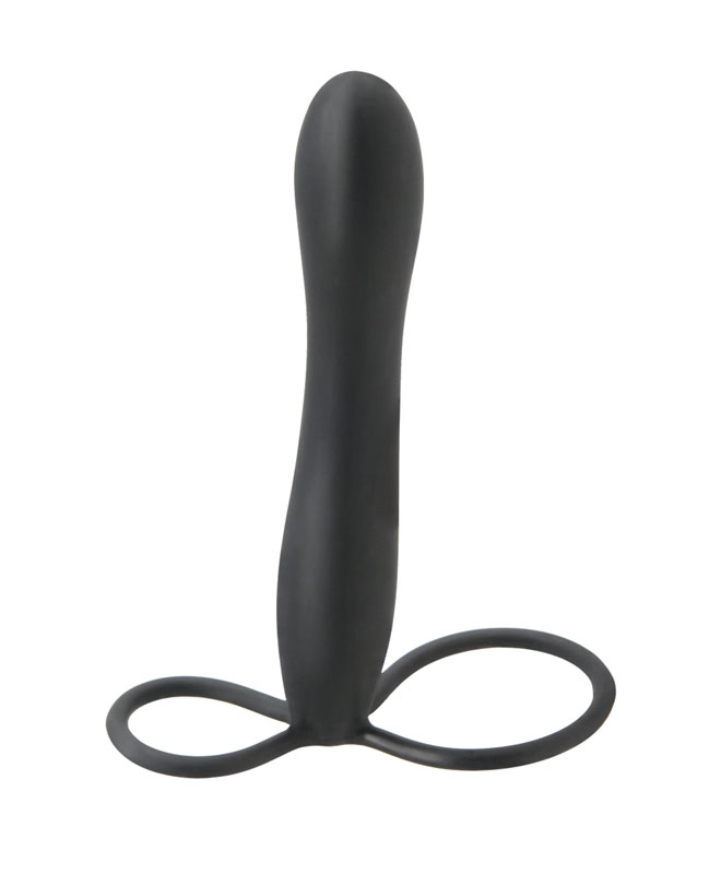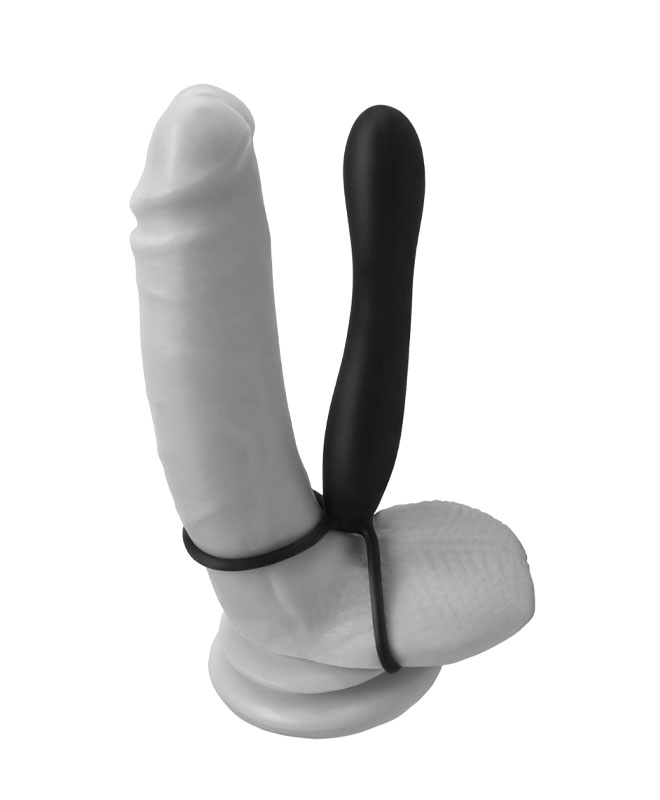 Med dette hendige lille leketøyet kan du og kjæresten din oppleve spenningen ved dobbel penetrasjon uten å måtte involvere en annen partner! Silikonringen på toppen av skaftet fungerer som en vanlig penisring samtidig som den holder dildoen på plass, mens den større bunnringen går rundt ballene hans for en supertight passform.