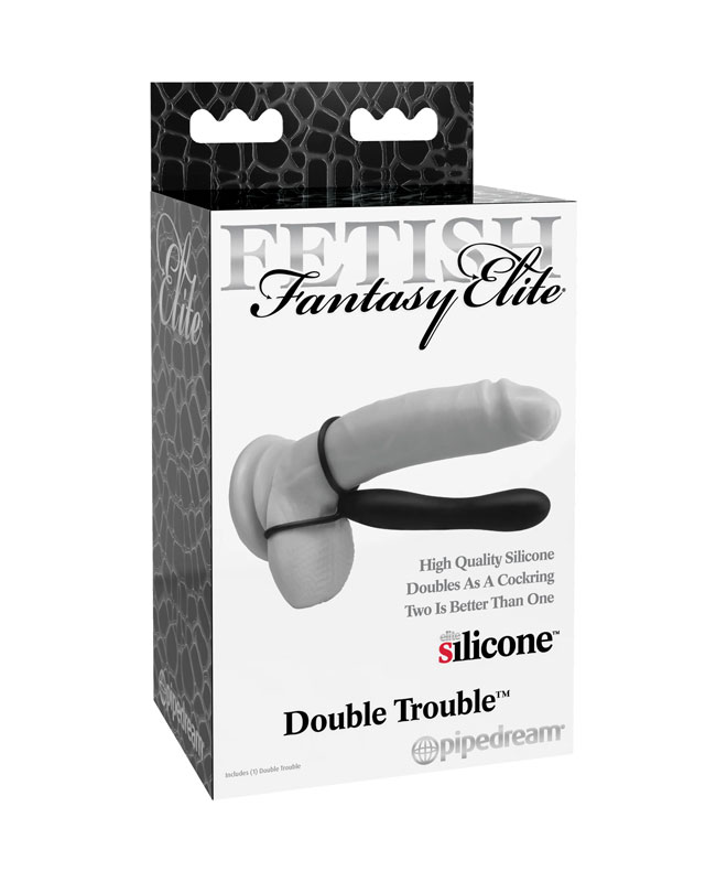 Fetish Fantasy Double Trouble beviser at to er bedre enn én! Opplev deilig dobbel penetrering enklere enn aldri før. Du blir umiddelbart dobbelt så mye som mannen du var før, takket være et glatt silikonskaft under som er klart til å doble plagene. Silikonskaftet har en avsmalnende tupp for enkel innføring, er sømløs hele veien rudt, og er fast nok til å ikke bøye seg under penetrering.