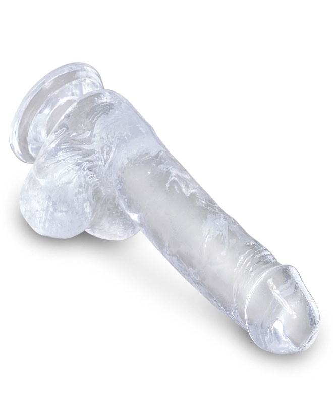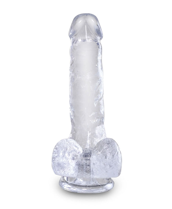 Vil du ha en dildo som både ser frekk ut og føles ekte? Denne dildoen fra King C er laget i gjennomsiktig materiale som gir den et rent og sexy utseende. Skaftet har realistiske detaljer med tydelige årer og markert hode, som gjør den visuelt pirrende og naturtro. Med baller i basen og en lengde på 17,8 cm ser den ut som en ekte, men pakket i noe litt mer vågalt og moderne.