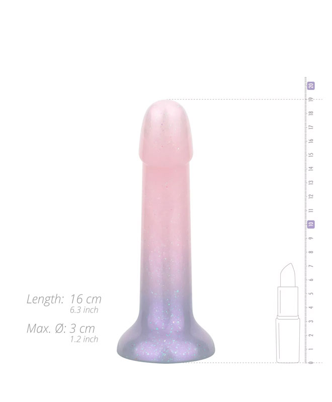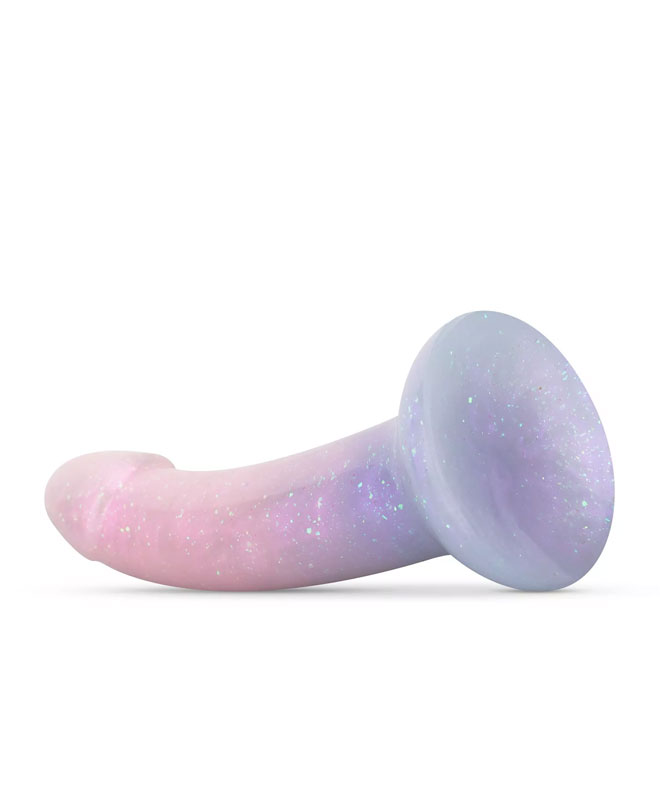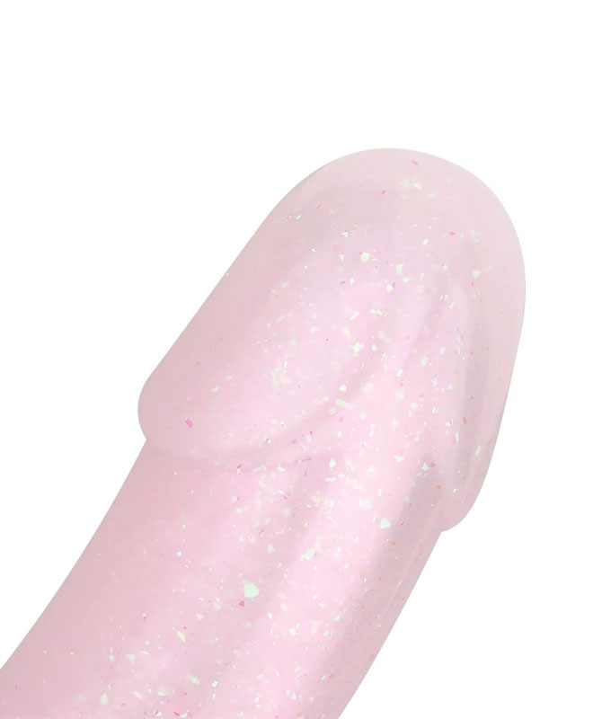 Med sin glatte overflate og myke form glir den lett på plass, særlig om du bruker litt vannbasert glidemiddel. Den gir deg en pirrende følelse av eventyr, og er ideell for både sololek og frekke økter med partner. En glitrende dildo for deg som vil sette farge på sexlivet.