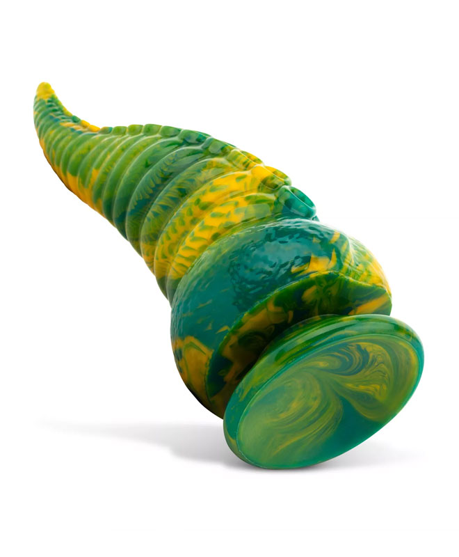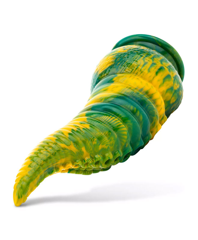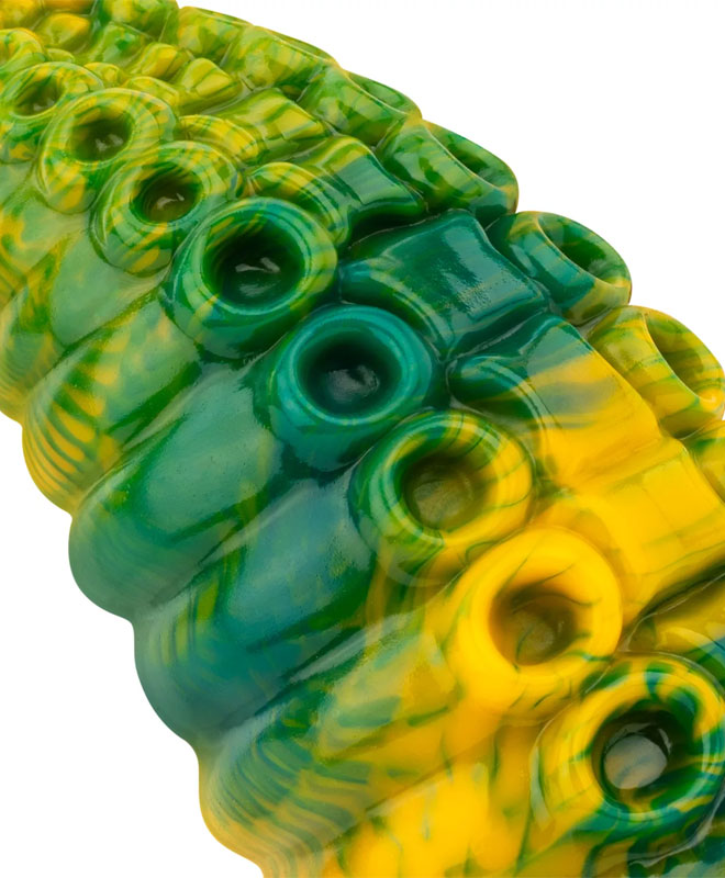 Dildoen har et særegent utseende med livlige gule og grønne farger. Det faste, men fleksible materialet sikrer en komfortabel og tettsittende passform. For økt nytelse, bruk vannbasert (anal) smøremiddel. Her er det bare å drømme seg bort!