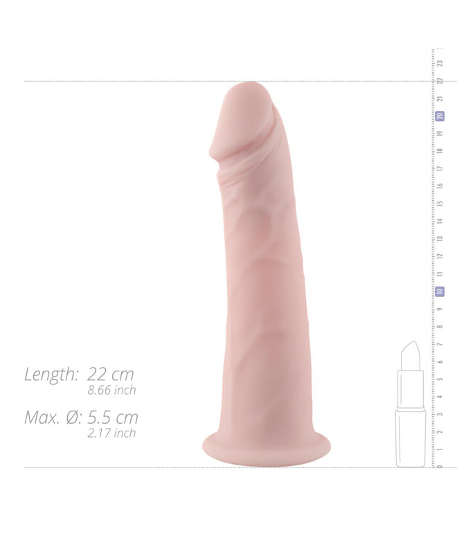 Cameron er en hul dildo som tres over penis, og størrelsen gjør den perfekt for erfarne brukere. Denne dildoen har et realistisk design med en svak kurve og et fleksible skaft med årer for ekstra stimulering. Innsiden er glatt. Dildoen er laget av kroppssikker silikon og har en bred base.