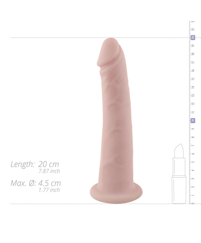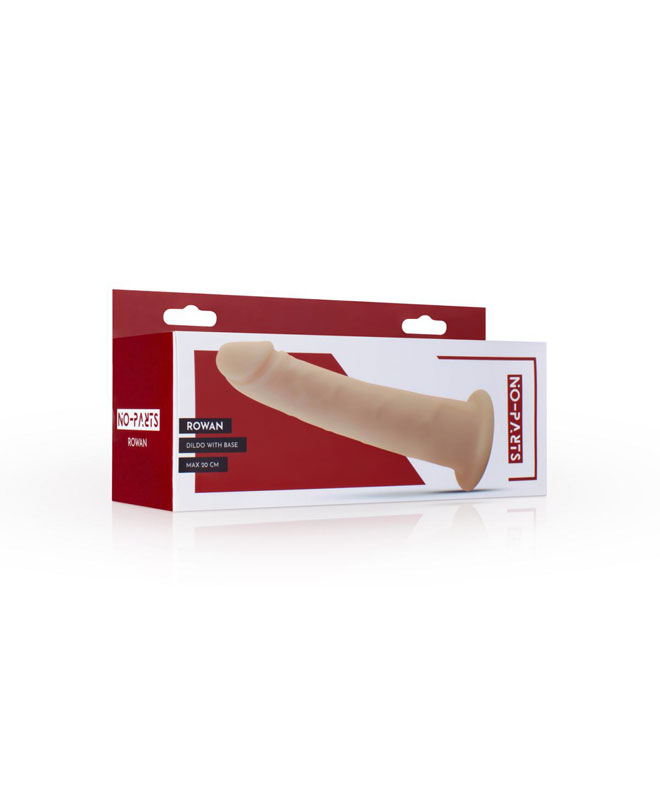 Størrelsen på Rowan-dildoen gjør den perfekt for erfarne brukere, og den er ergonomisk formet med en svak kurve, en realistisk glans og et skaft med årer. Kjernen er solid, men likevel fleksibel nok for komfortabel anal eller vaginal stimulering. Utsiden føles myk og glatt. Dildoen er laget av kroppssikker silikon og har en bred sugekopp i bunnen. Det gjør dildoen perfekt for håndfri lek også.