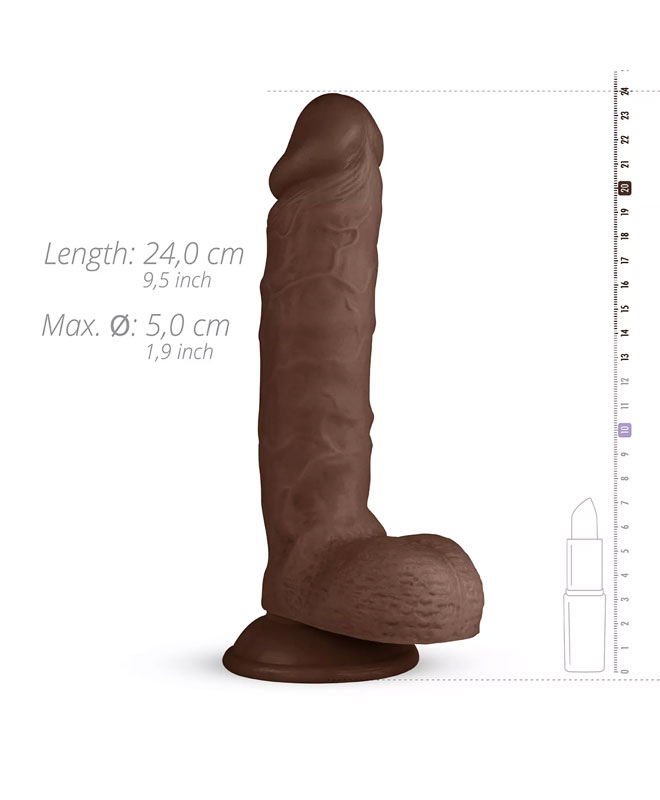 Nyt deilig stimulering med Waylon-dildoen fra Real Fantasy Collection! Denne dildoen er laget av fleksibel PVC og har realistiske årer og en pung. Takket være den sterke sugekoppen kan du feste dildoen til enhver glatt eller flat overflate, eller enkelt plassere den i en strap-on-sele for håndfri nytelse. Bruk dildoen med vannbasert glidemiddel.