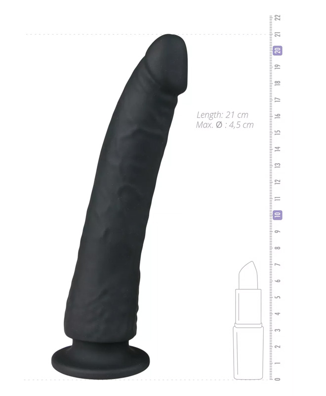Denne realistiske dildoen fra EasyToys Collection kommer i en stilig sort farge med tydelige konturer, markerte årer og avrundet hode. Silikonoverflaten føles glatt og behagelig mot huden, og designet balanserer mellom sexy og diskré. Med en total lengde på 21 cm og tykkelse på 3,5 cm fyller den godt, både visuelt og innvendig.