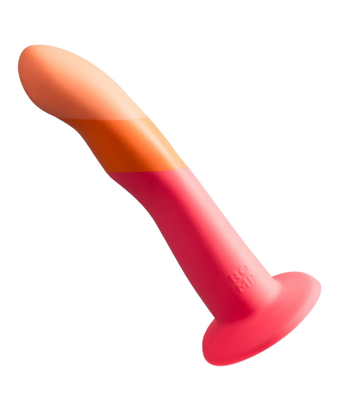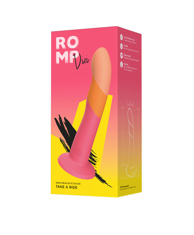 ROMP Dizis buede skaft tilbyr 18 centimeter jevn, silkeaktig forførelse som setter p-punkt- og g-punktstimulering foran og i sentrum. Den er vanntett med en bred og kraftig sugekopp i basen som gjør det lett å bruke den i strap-on-seler. Den har også et hull i bunnen av basen slik at du kan bruke den sammen med bulletvibratoren ROMP Riot.
