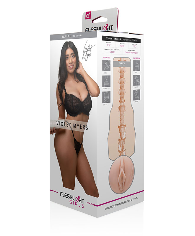 Fleshlight Girls Signature Collection med Violet Myers unike Waifu Sleeve! Kun tilgjengelig på denne modellen - støt inn mellom Violet Myers's stramme, tynne lepper og opplev en trang kanal med variert tekstur som straks tar deg over kanten til orgasme!