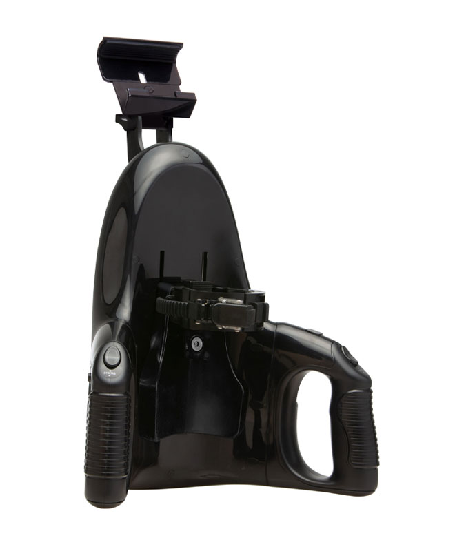 Når du er i en sikker, ønsket posisjon, bruk den store låsen for å stramme grepet. Løft den store låsen fra venstre side for å stramme stroppen godt inn, pass på at du ikke strammes for mye og muligens skader Universal Launch eller strokeren.