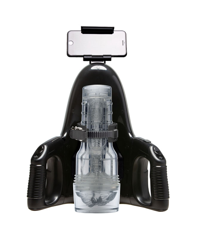 Hvis du vil ha en mer konsentrert opplevelse, forkort støtlengden og veksle mellom de tre tilgjengelige lystsonene – base, skaft eller tupp. Det universelle smarttelefonfestet på toppen gir deg muligheten til å se favorittinnholdet ditt mens begge hender er på kontrollene.