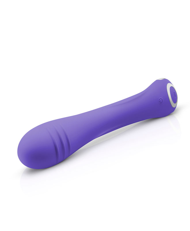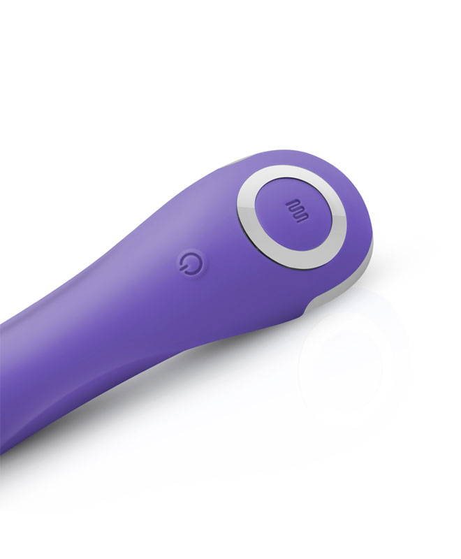 Start vibrasjonene ved å trykke på av/på-knappen. Det er en større knapp under denne knappen som kan brukes til å justere vibrasjonsinnstillingene. Vibratoren er oppladbar med den medfølgende USB-kabelen.