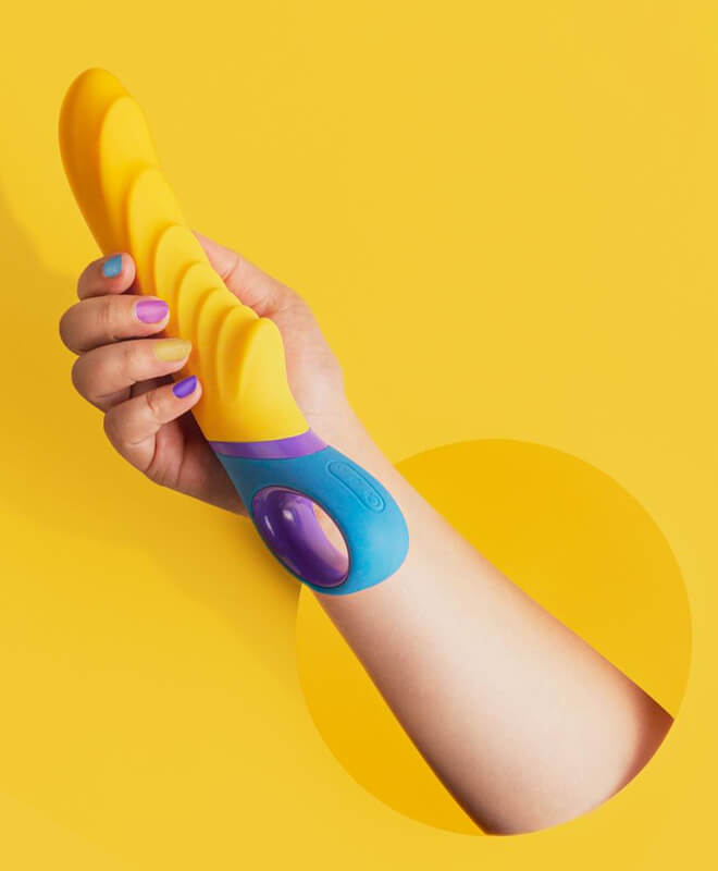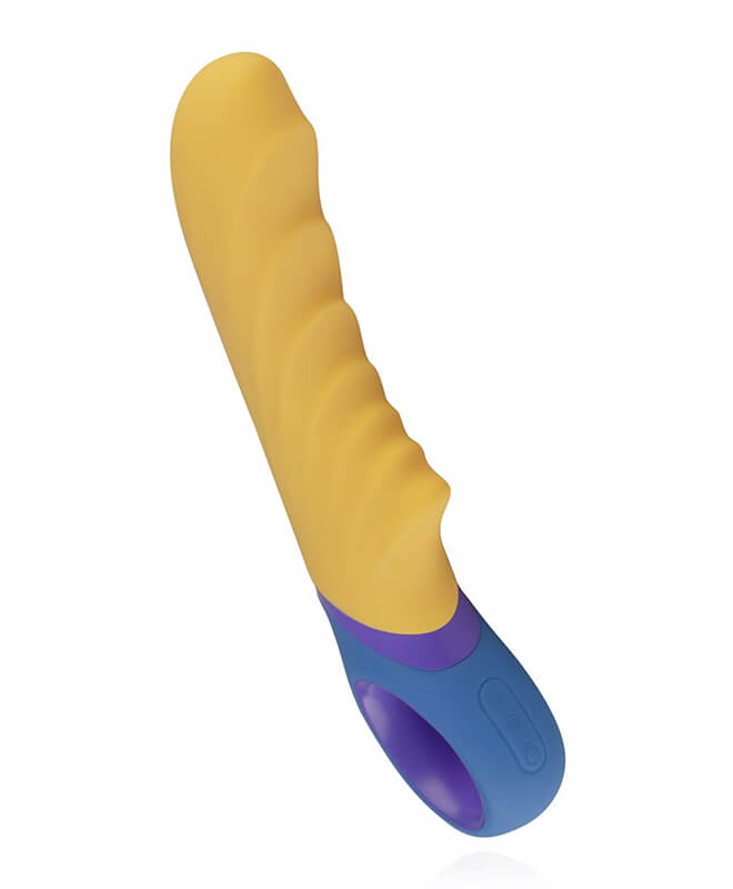 Tone er et fargerikt tillegg til G-punkt vibratorsamlingen! Dette kraftsenteret har 2 kraftige motorer og 13 vibrasjonsinnstillinger. Den vekker alle sansene dine med utseende, evner og ribbet skaft. Tone er også vanntett - ta den med i dusjen da vel!