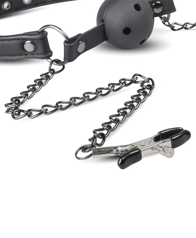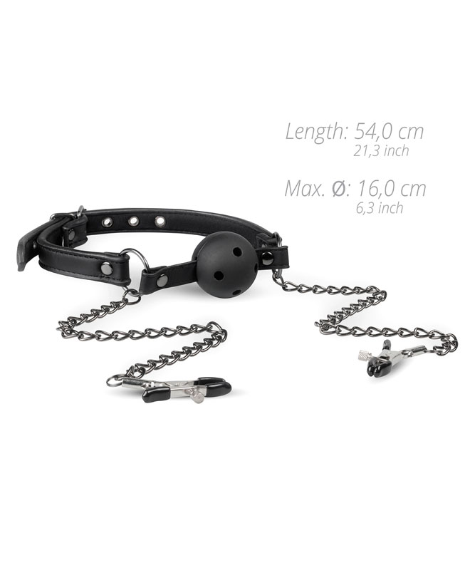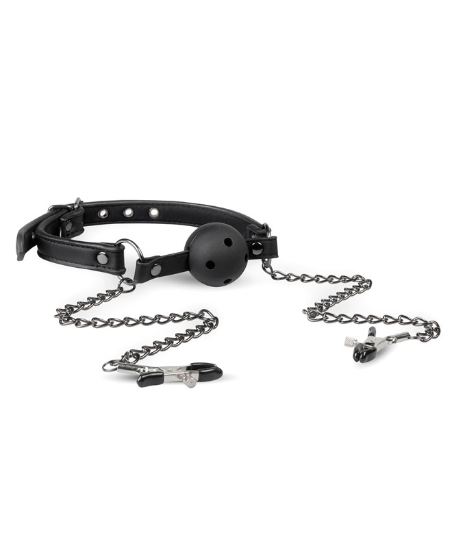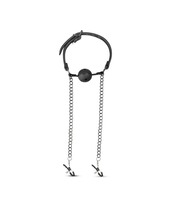 Gå for det ekstreme med denne munnballen med brystklemmer fra EasyToys Fetish Collection.