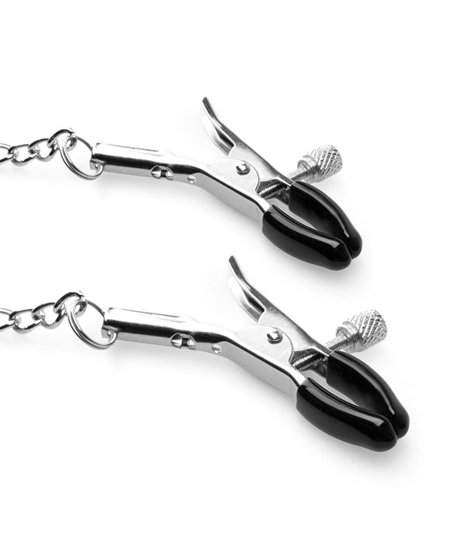 Stroppen som går rundt hodet er justerbart opptil 57 cm for perfekt passform. Med skruen på brystklemmene kan du selv lett justere trykket på brystvortene. Lenkene har en lengde på 50 cm.