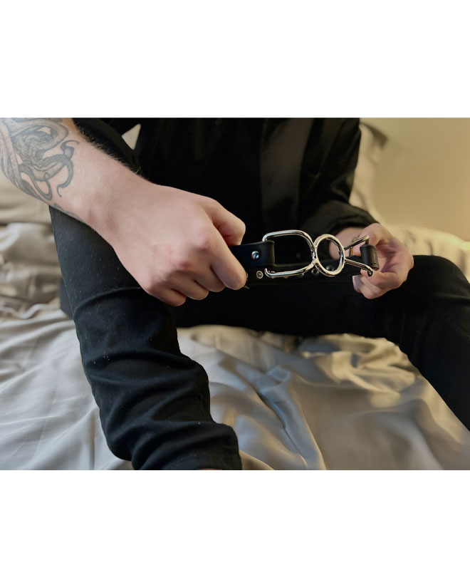 Vær den som har kontroll og nyt følelsen av makt ved å få partneren din til å tie med en munngag i metall!