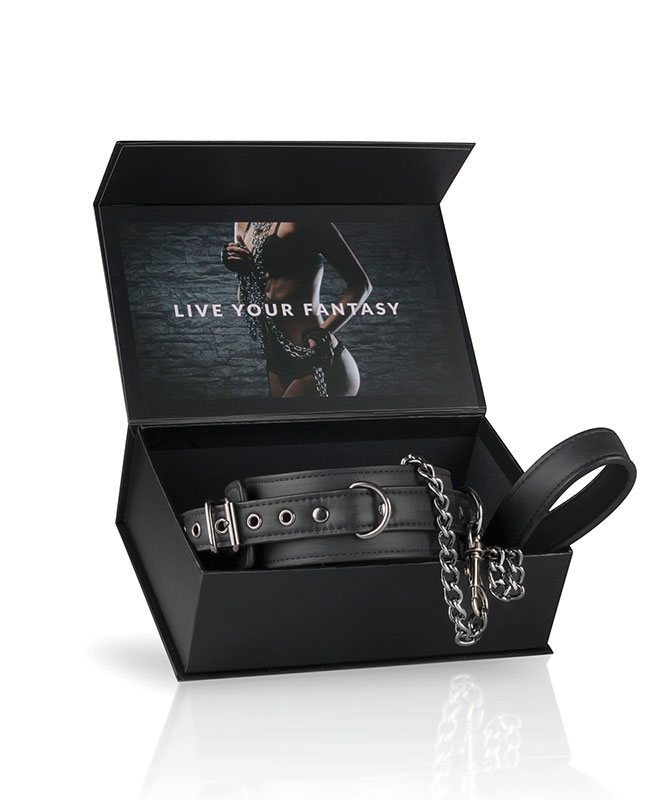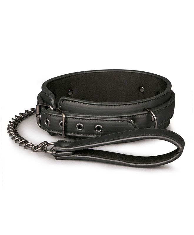 Halsbåndet kommer med avtagbart leiebånd og har myk og behagelig foring for optimal komfort under lek og sex. Både halsbåndet og lenkens håndtak er laget i slitesterkt kunstlær og er silkemykt å ta på. Selve halsbåndet kan enkelt justeres med beltereimen.
