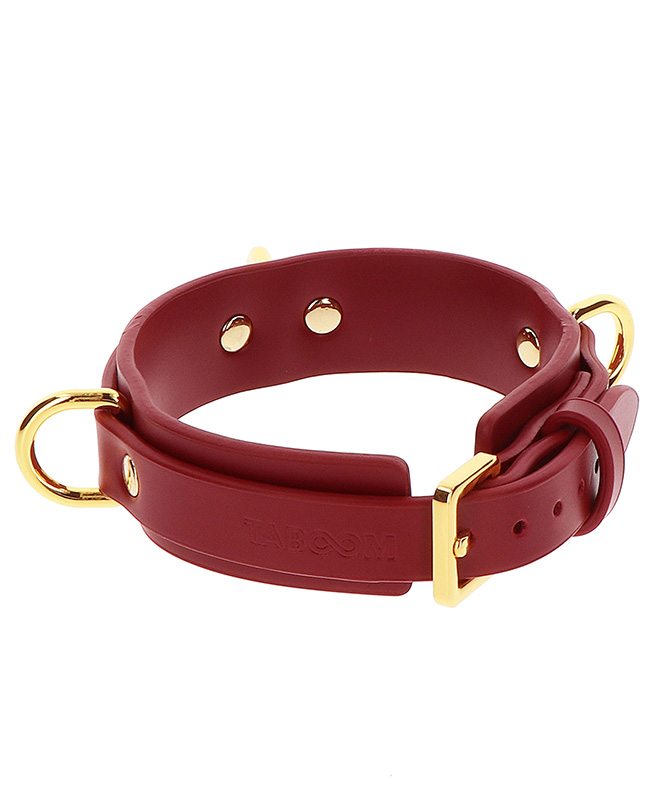Opplev en het og intens bondageøkt med dette pirrende halsbåndet fra Taboom! Vær kreativ og bruk de 3 D-ringene i kombinasjon med tau eller mansjetter og tilfredsstill alle dine kinky ønsker. Gjør deg klar for en luksuriøs bondage-opplevelse med høykvalitets Taboom D-Ring Collar Deluxe!