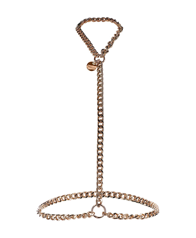 Kle deg i mindre for å imponere stort på soverommet med Taboom Statement Harness. Selen er sterk, laget av skinnende rosegullmetall og flott for et kinky eventyr. Eller bruk den som et sexy og stilig tilbehør. La det gli over kurvene dine og krev oppmerksomheten du fortjener. Perfekt å bruke over festklær eller over bar hud for sexy forførelse.