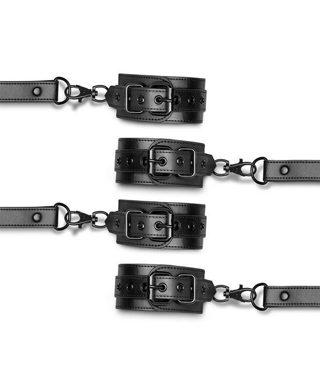 Det er brukt solid kunstlær som tåler røff lek, noe som gjør settet veldig slitesterkt. Bruk den sammen med annet bondageutstyr som halsbånd eller en ball gag for mer intens lek og moro.