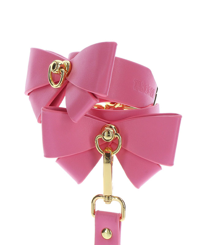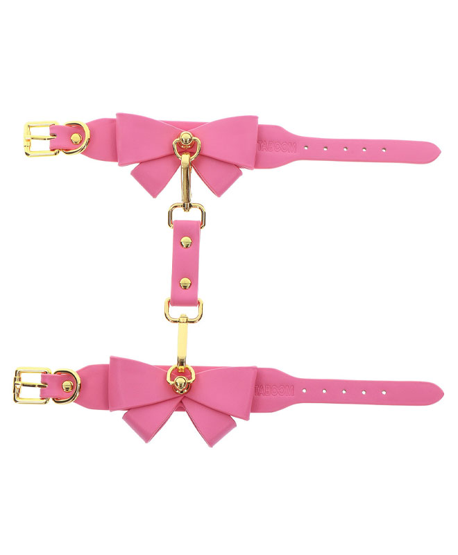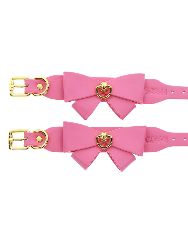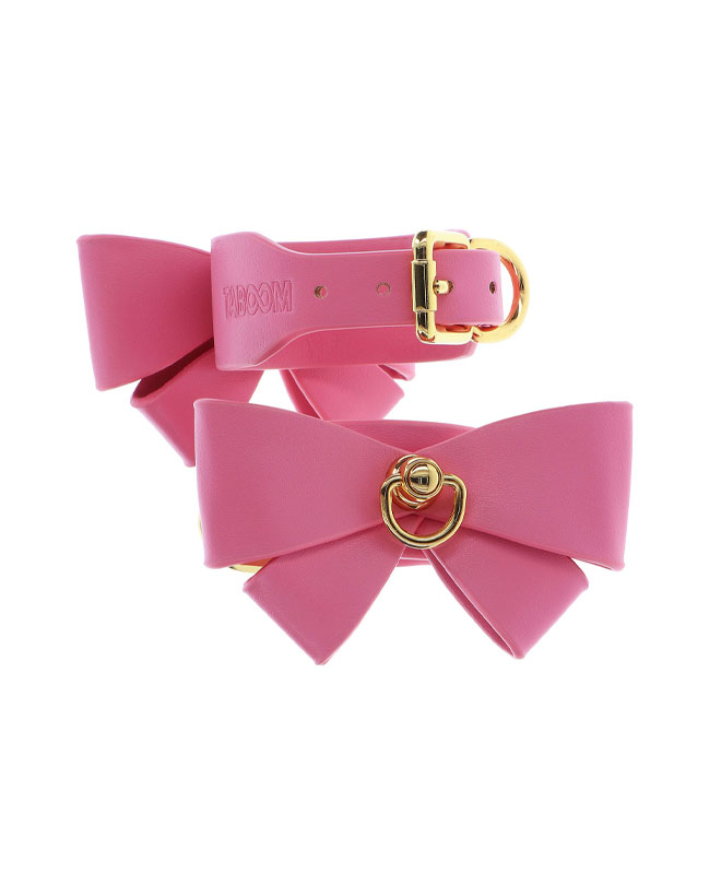 Legg til et snev av søthet og forførelse til bondage-samlingen din med disse Taboom Malibu ankelmansjettene. Omfavn din lekne side med disse rosa, veganske mansjette utsmykket med en leken sløyfe og fristende gullbelagte metalldetaljer.