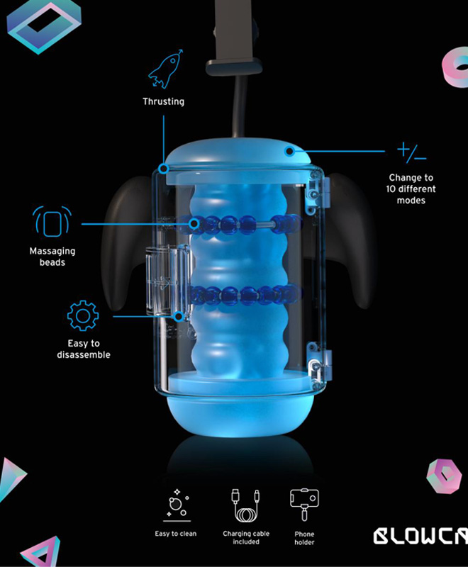 Det ergonomiske designet er laget for å ligge komfortabelt i hånden, slik at du enkelt kan nyte mens runkemaskinen gjør jobben sin. Velg mellom totalt 8 forskjellige runkemoduser som du enkelt kan kontrollere mens den er i bruk. Plasser telefonen i den medfølgende avtakbare telefonholderen, len deg tilbake og nyt hva BLOWCAST har å tilby!