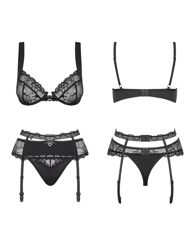 Obsessive har gjort det igjen! Dette sexy undertøysettet fra Heartina er en sikker vinner. Settet har en BH i blonder med spiler, tykke skulderstropper og hempelukking i ryggen.