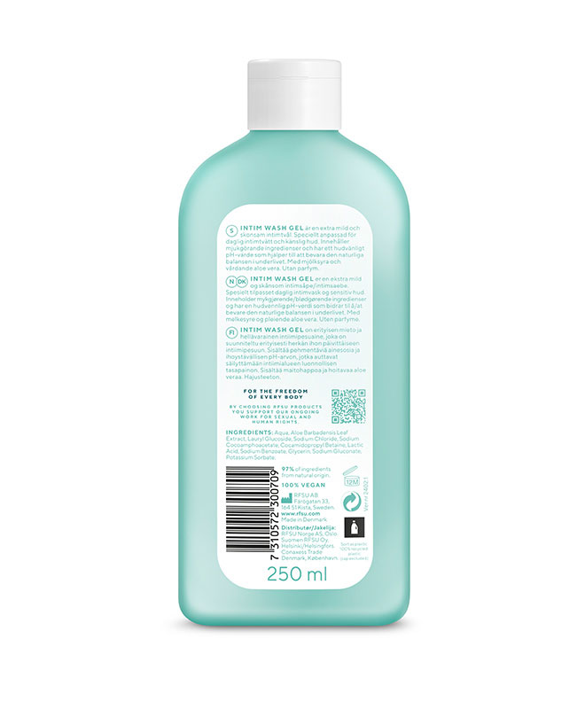 Denne intim såpen fra RFSU er en ekstra mild og skånsom formel som er spesielt utviklet for daglig rengjøring av private områder og sensitiv hud. Den inneholder 97% naturlige ingredienser og er 100% vegansk.