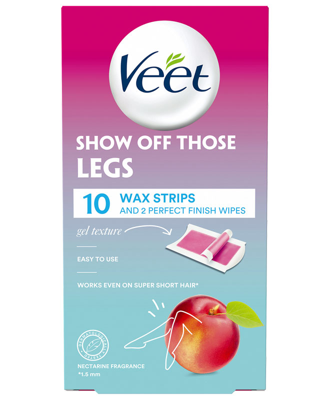 Veet Cold Wax flyter rundt og griper aktivt selv de korteste hårene, helt ned til 1,5 mm, og ikke huden. Voksremsene fjerner hårene fra roten for opptil 28 dager med silkemyk hud. Cold Wax fjerner hårene på få sekunder, uten oppvarming eller lang virketid.