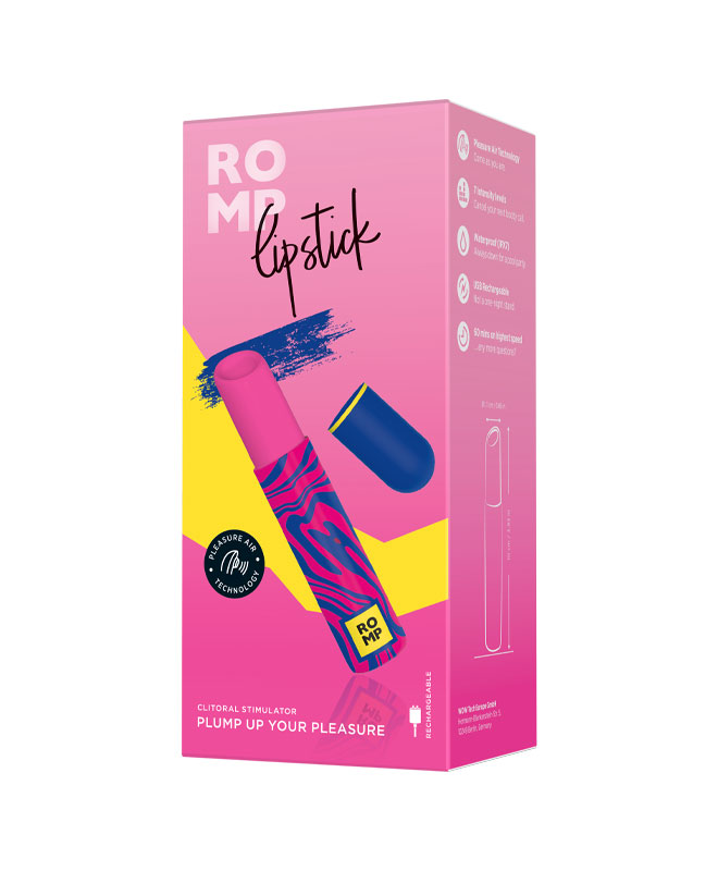 ROMP Lipstick er en klitoris sugende vibrator som bruker innovativ Pleasure Air Technology for å stimulere klitoris med milde, men kraftige bølger av kontaktløst lufttrykk i en sugelignende bevegelse for et uforglemmelig klimaks. Fra milde bølger til topper av nytelse, Lipstick har 7 forskjellige intensitetsinnstillinger for å levere det riktige nivået av klitorisstimulering for humøret og opphisselsen din.