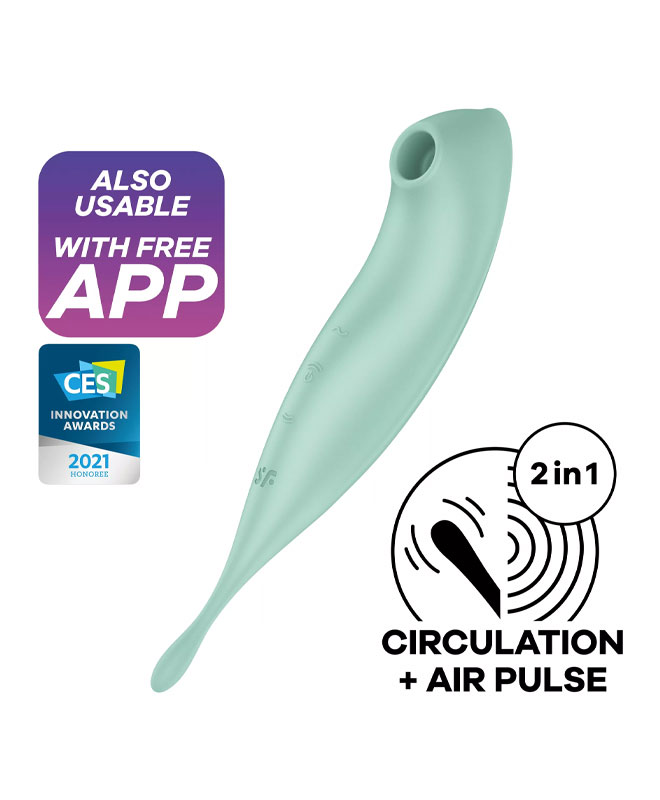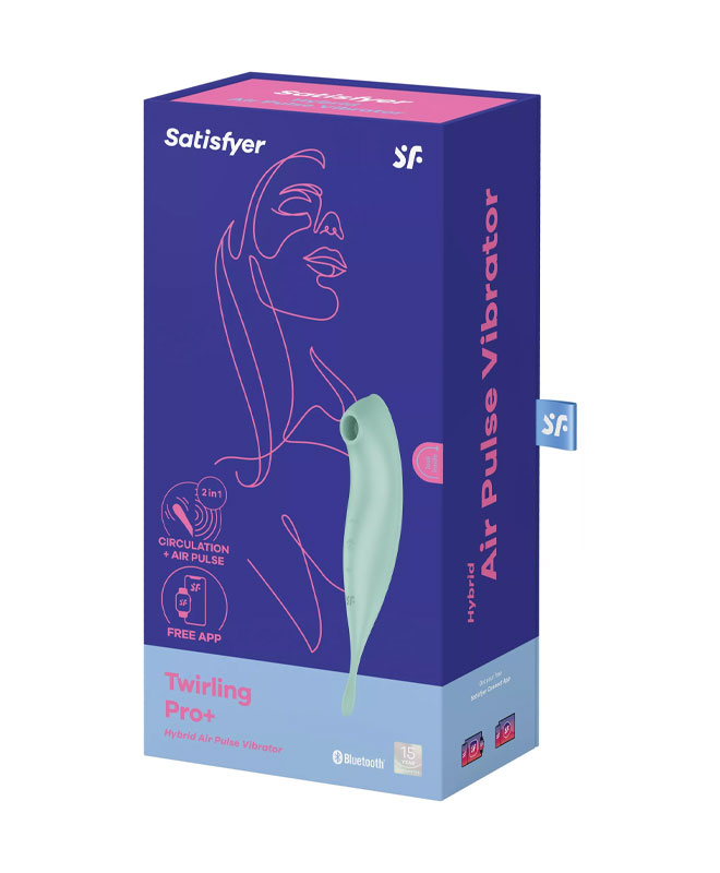 Styr de to spennende funksjonene uavhengig av hverandre og la de to kraftige motorene ta deg til nye høyder! Twirling Pro er kompatibel med den prisbelønte Satisfyer Connect-appen. Lag dine egne vibrasjonsmønstre eller la vibratoren pulsere til rytmisk musikk via Spotify.