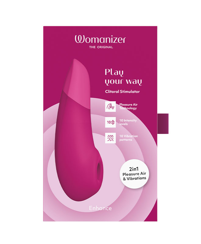 Er du klar for å bli sugd, vibrert og kjørt helt til kanten – igjen og igjen? Womanizer Enhance er ikke et vanlig sexleketøy. Det er en kompakt vibrator dedikert til din nytelse, skapt for å dra orgasmen ut av deg med en uutholdelig kraft og deilig intensitet.